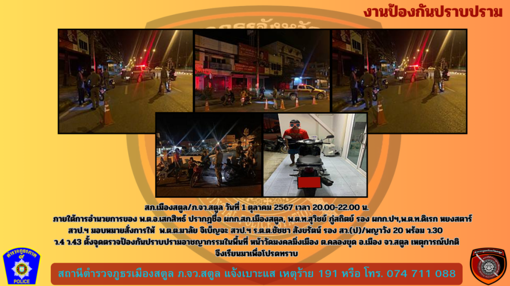 สภ.เมืองสตูล/ภ.จว.สตูล วันที่ 1 ตุลาคม 2567 เวลา 20.00- …