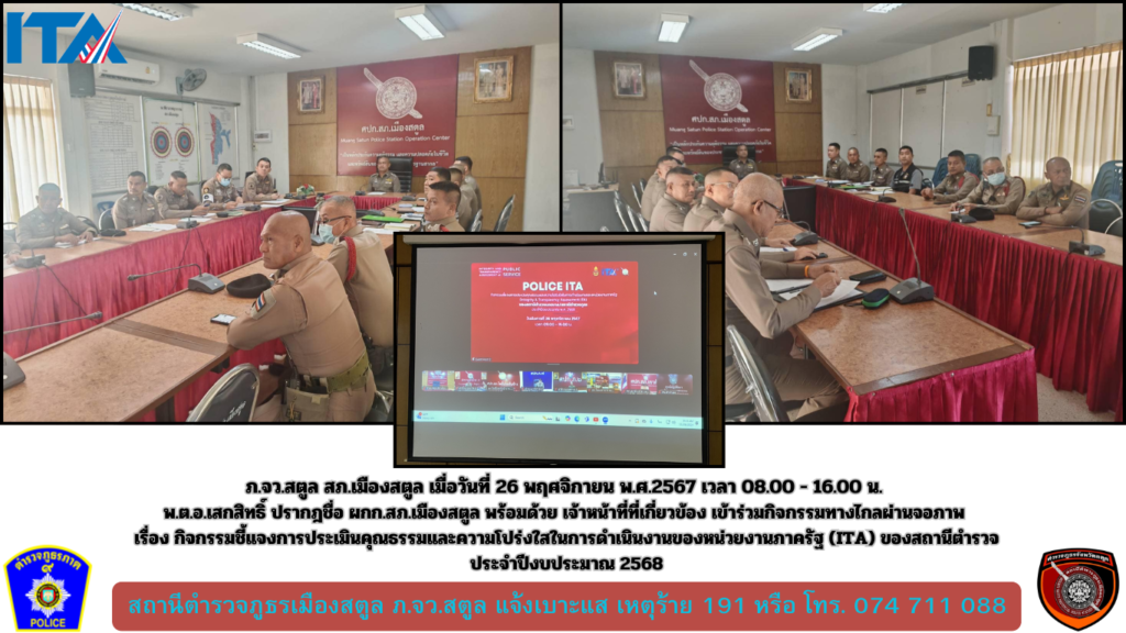 สถานีตำรวจภูธรเมืองสตูล พร้อมด้วยเจ้าหน้าที่ที่เกี่ยวข้อง เข้าร่วมกิจกรรมชี้แจ้งการประเมินคุณธรรมฯ งบประมาณ พ.ศ.2568 เมื่อวันที่ 26 พฤศจิกายน 2567