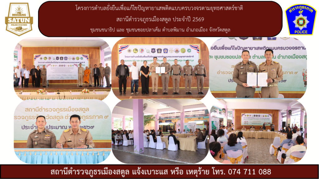 โครงการตำบลยั่งยืนเพื่อแก้ไขปัญหายาเสพติดแบบครบวงจรตามยุทธศาสตร์ชาติ สถานีตำรวจภูธรเมืองสตูล ประจำปี 2569 ชุมชนชนาธิป และ ชุมชนซอยปลาเค็ม ตำบลพิมาน อำเภอเมือง จังหวัดสตูล