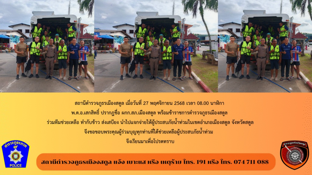 ทีมช่วยเหลือ ทำกับข้าว ส่งเสบียง นำไปแจกจ่ายให้ผู้ประสบภัยน้ำท่วม สถานีตำรวจภูธรเมืองสตูล Leave a Comment / ข่าวประชาสัมพันธ์ ผลการดำเนินงาน สภ.เมืองสตูล, ข่าวภารกิจผู้บังคับบัญชา, อำนวยการ ประจำเดือน พฤศจิกายน 2568 / By muangsatun