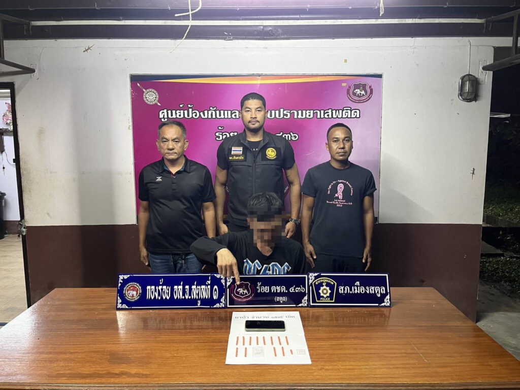 สถานที่จับกุม บริเวณซอยศุลกานุกูล 28 ตรงข้ามเทคนิคสตูล ถ.ศุลกานุกูล ต.พิมาน อ.เมือง จ.สตูล ต่อเนื่อง รพ.สตูล