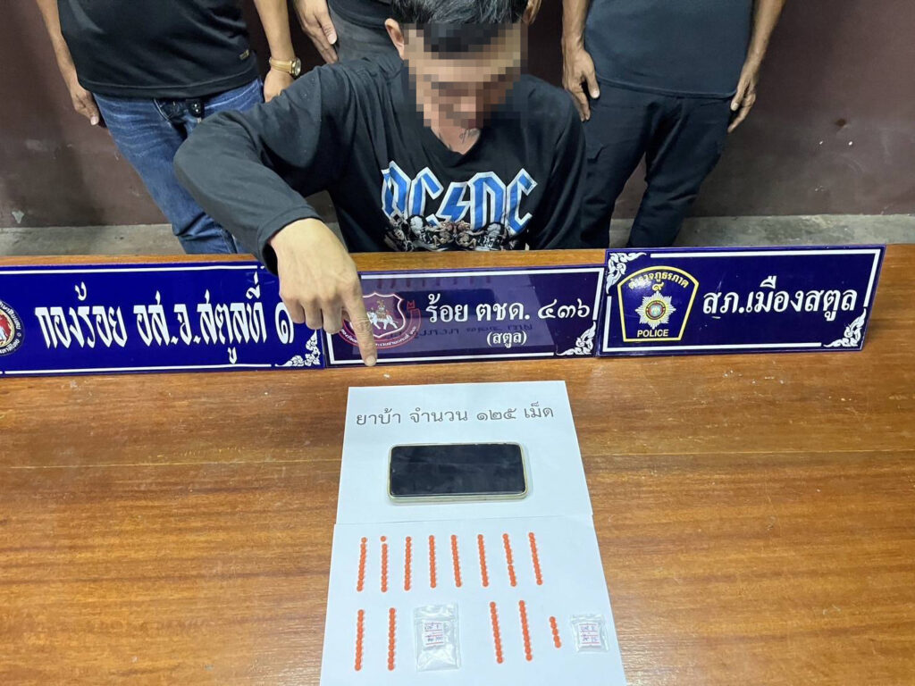 พร้อมของกลาง 1.ยาบ้า จำนวน 125 เม็ด 2.ใบรับรองผลการตรวจปัสสาวะจากแพทย์ รพ.สตูล