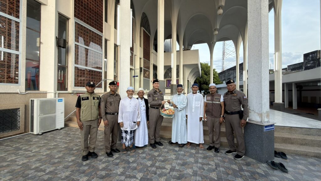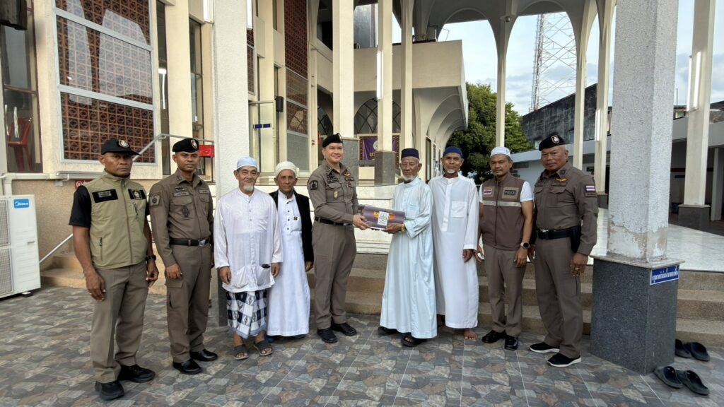 พ.ต.อ.สุรจิต เพชรจอม ผกก.สภ.เมืองสตูล ออกพบปะเยี่ยมเยืยน นายเจ๊ะอาด ตาหมาด อีหม่านมัสยิดกลางมำบัง ตำบลพิมาน อำเภอเมืองสตูล จังหวัดสตูล ได้มอบสิ่งของ (กระเช้าผลไม้) และได้มอบอิทผาลัมให้แก่มัสยิด เมื่อวันที่ 23 กุมภาพันธ์ 2569 Leave a Comment / ข่าวภารกิจผู้บังคับบัญชา / By muangsatun