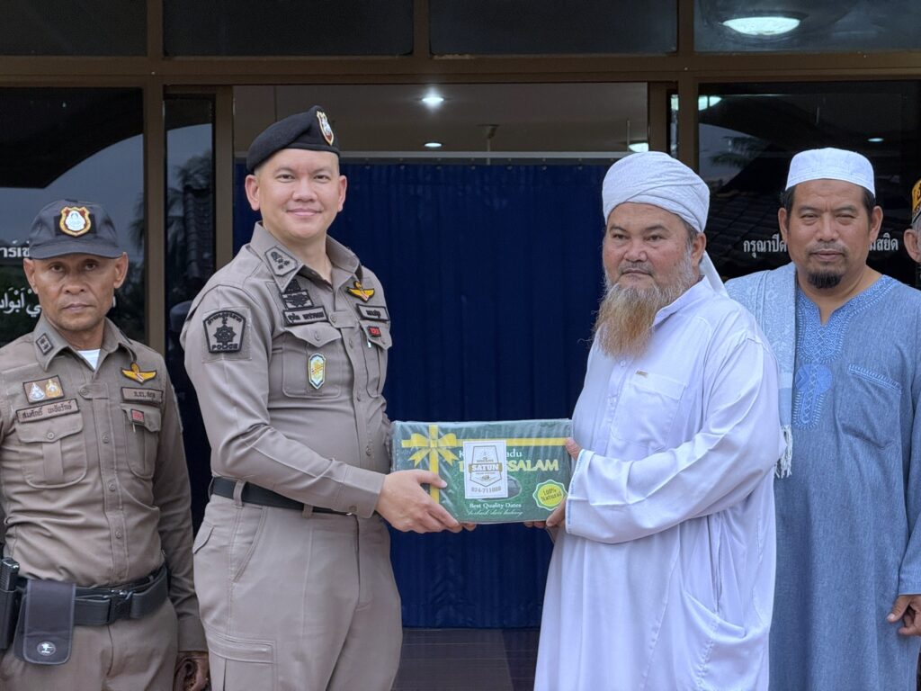 พ.ต.อ.สุรจิต เพชรจอม ผกก.สภ.เมืองสตูล พร้อมด้วยข้าราชการตำรวจสถานีตำรวจภูธรเมืองสตูล, ชุดมวลชนสัมพันธ์ ร่วมมอบสิ่งของในช่วงเทศกาลเดือนรอมฎอนเพื่อสนับสนุนการประกอบศาสนกิจของพี่น้องมุสลิมเพื่อเสริมสร้างความสัมพันธ์อันดี และร่วมรับฟังปัญหาในพื้นที่กับโต๊ะอิหม่าม และกรรมการมัสยิด และประชาชนที่มาร่วมกิจกรรมละศีลอด ณ มัสยิดบากัรบาตา ถนนสตูลธานี ตำบลพิมาน อำเภอเมือง จังหวัดสตูล