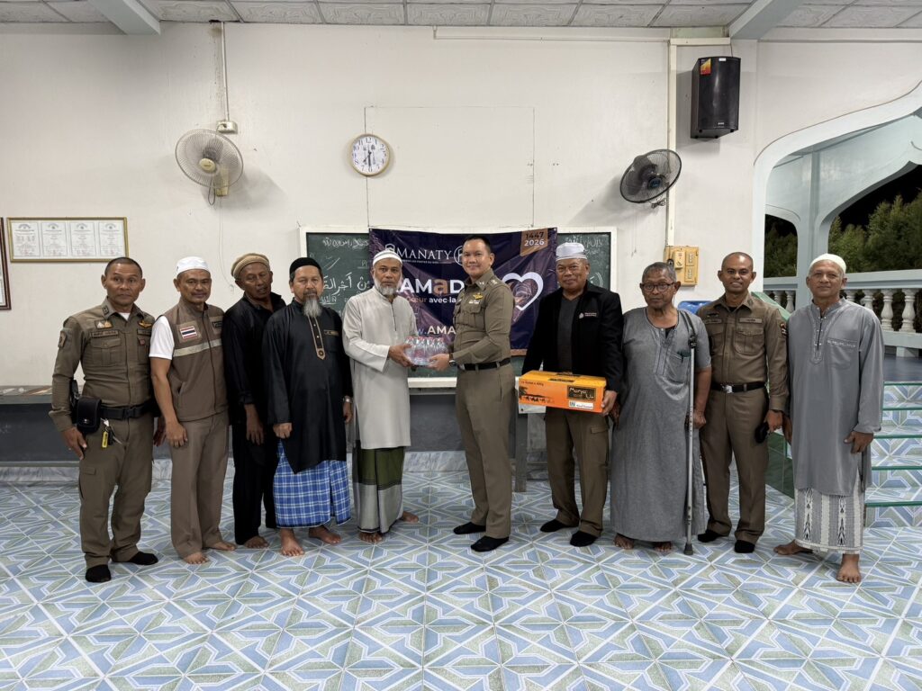 พ.ต.อ.สุรจิต เพชรจอม ผกก.สภ.เมืองสตูล พร้อมข้าราชการตำรวจสถานีตำรวจภูธรเมืองสตูล, ชุดปฏิบัติการมวลชนสัมพันธ์ มอบสิ่งของในช่วงเทศกาลเดือนรอมฎอนเพื่อสนับสนุนการประกอบศาสนกิจ ณ มัสยิดอัลฟุรกอน (ท่าไม้ไผ่) ตำบลพิมาน อำเภอเมืองสตูล จังหวัดสตูล เมื่อวันที่ 4 มีนาคม 2569 Leave a Comment / ข่าวภารกิจผู้บังคับบัญชา / By muangsatun