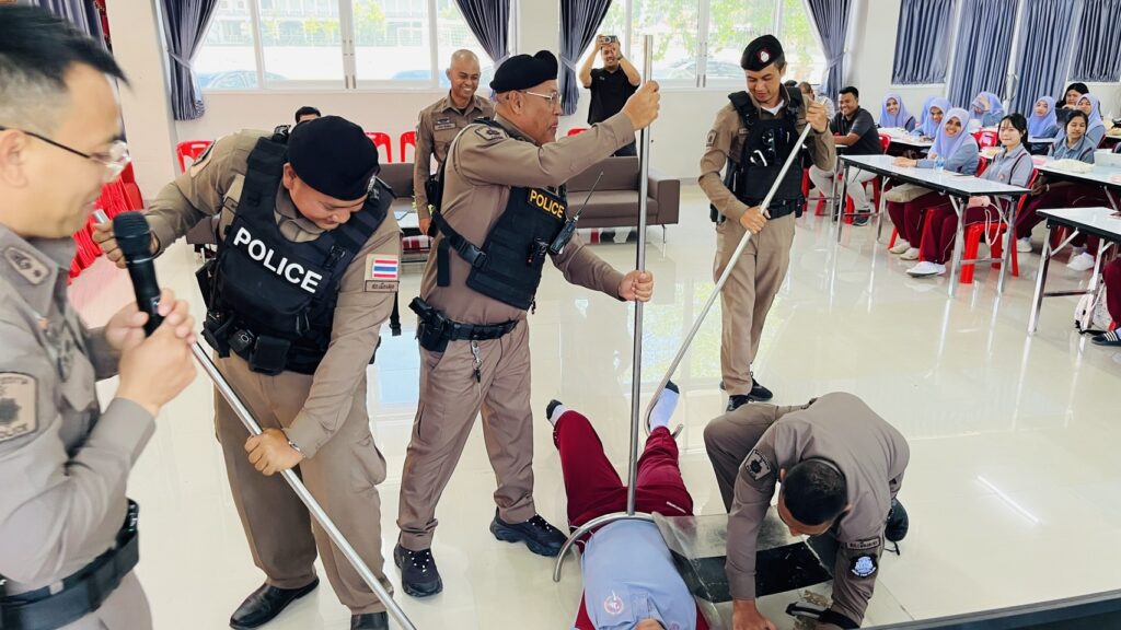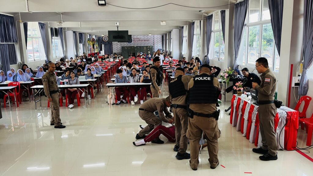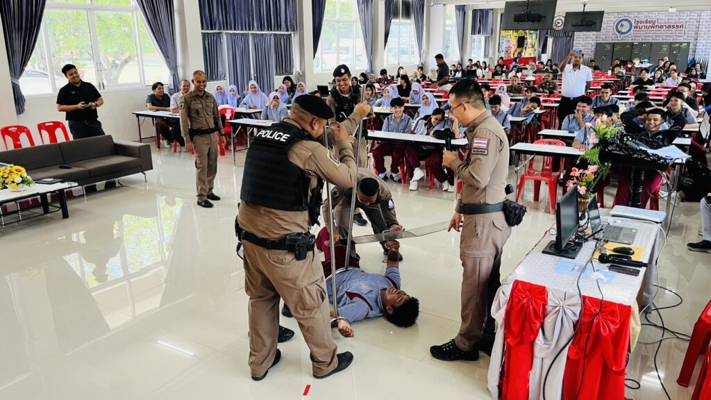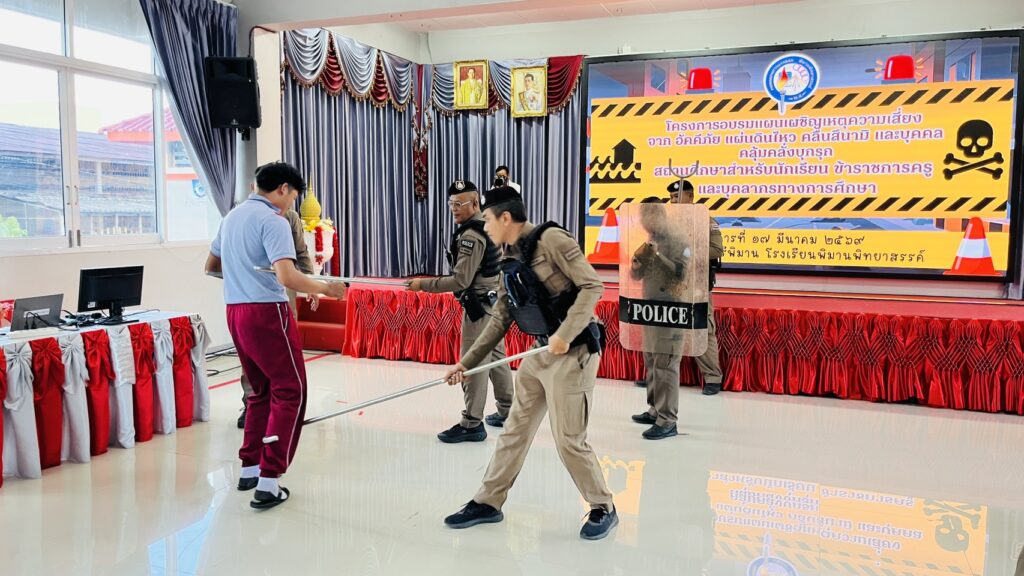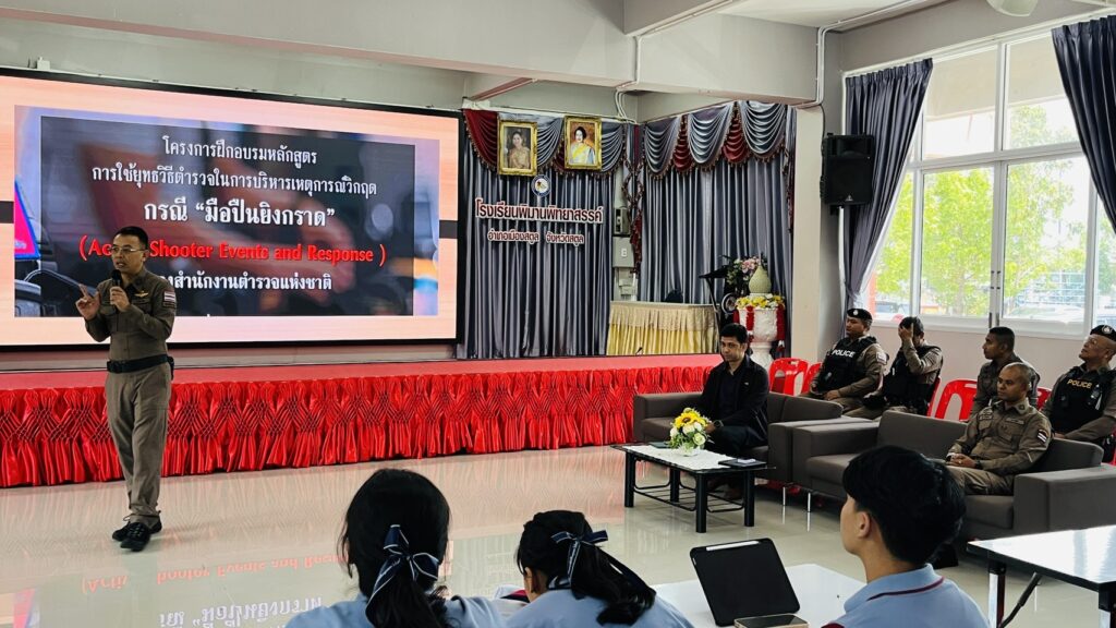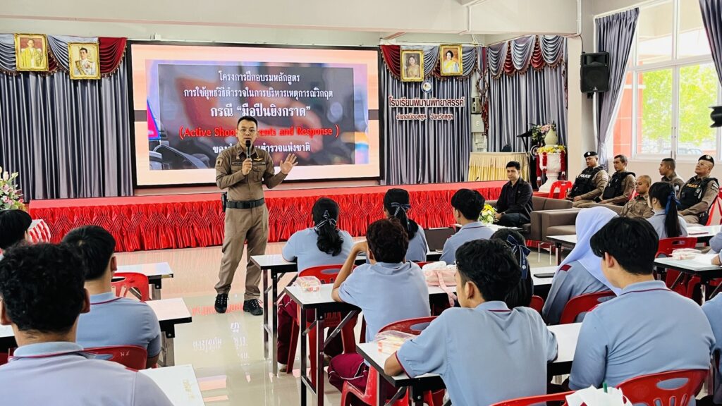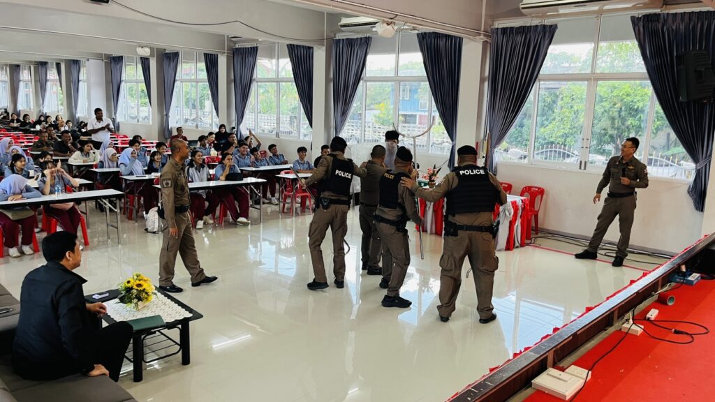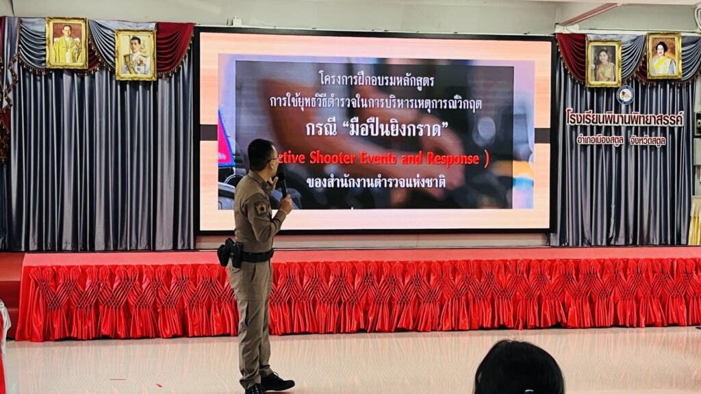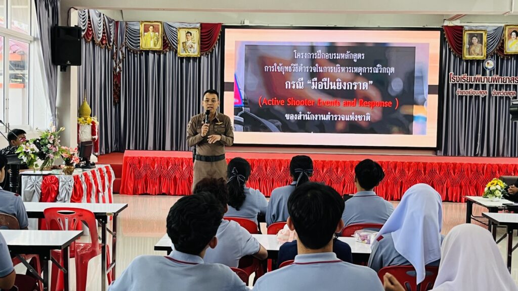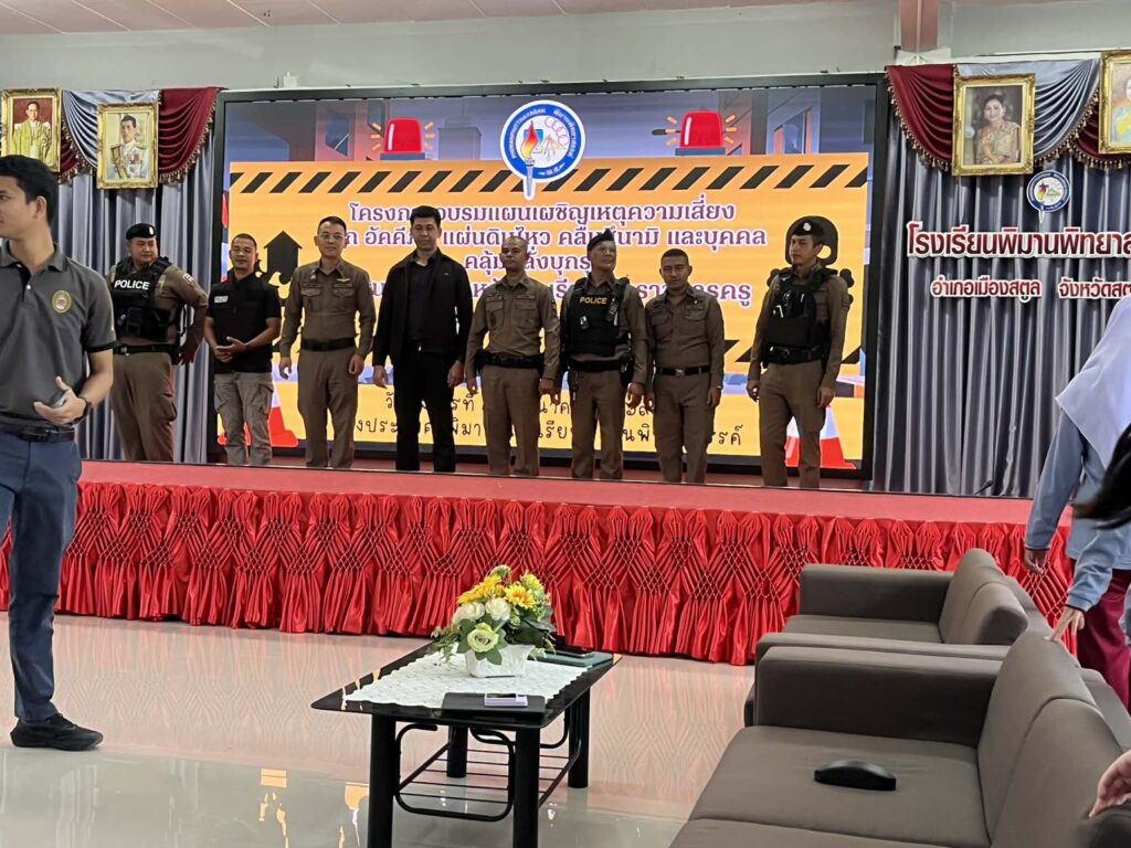 พ.ต.อ.สุรจิต เพชรจอม ผกก.สภ.เมืองสตูล มอบหมายสั่งการให้ พ.ต.ท.สุวิชญ์ ภู่สถิตย์ รอง ผกก.ป.ฯ พ.ต.ท.อารัน โต๊ะเอียด สวป.ฯ พร้อม ว.30 ร่วมเป็นวิทยากร โครงการอบรมแผนเผชิญเหตุ ความเสี่ยงจาก อัคคีภัย แผ่นดินไหว คลื่นสึนามิ และบุคคลคลุ้มคลั่งบุกรุกสถานศึกษาสำหรับนักเรียน และข้าราชการครูและบุคลากรทางการศึกษา ณ ห้องประชุมศรีพิมาน เมื่อวันที่ 17 มีนาคม 2569 Leave a Comment / ข่าวประชาสัมพันธ์ ผลการดำเนินงาน สภ.เมืองสตูล, ปราบปราม ประจำเดือน มีนาคม 2569 / By muangsatun