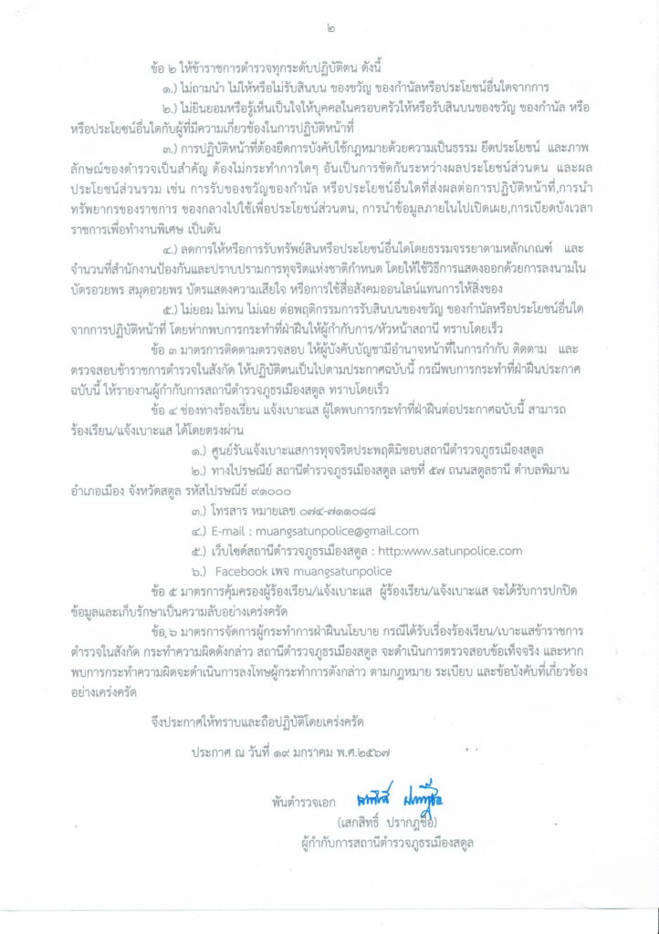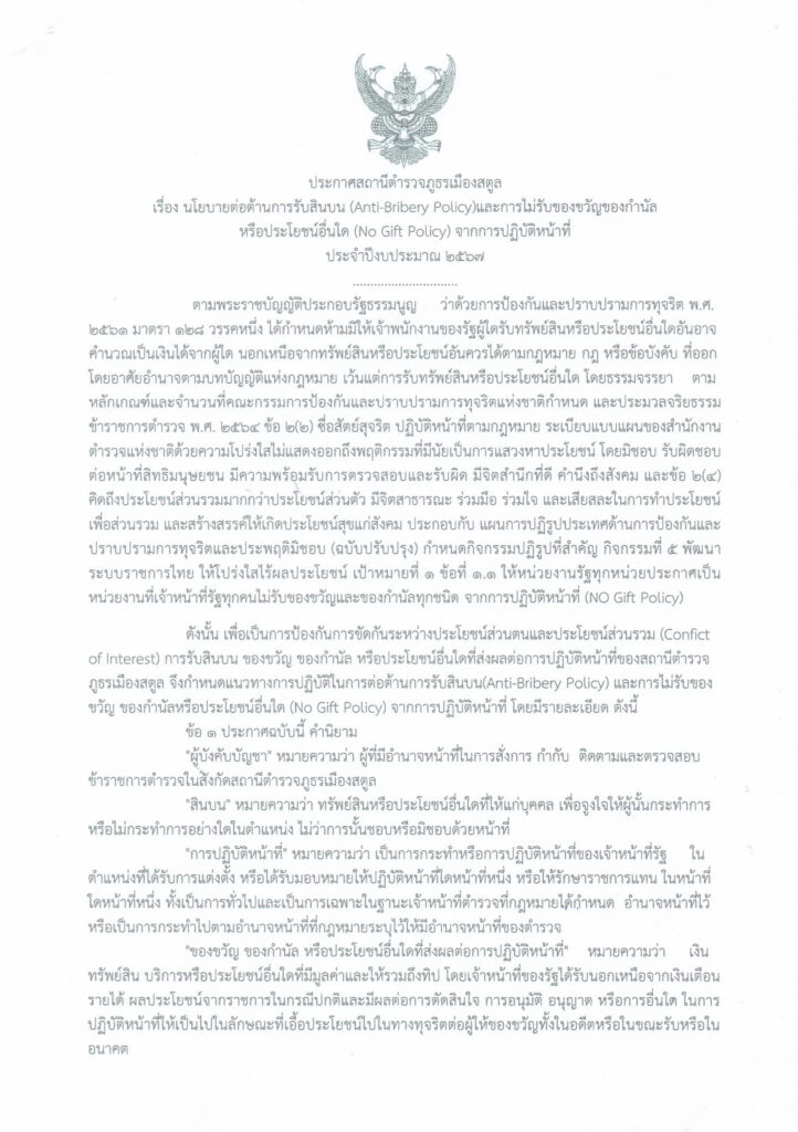 ประกาศนโยบายต่อต้านการรับสินบน